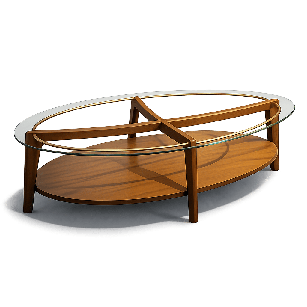 Seamless glass and warm wood unite in this Mid-Century Modern Centre Table, where sculptural form, brass detailing, and refined craftsmanship bring effortless sophistication to contemporary living spaces.