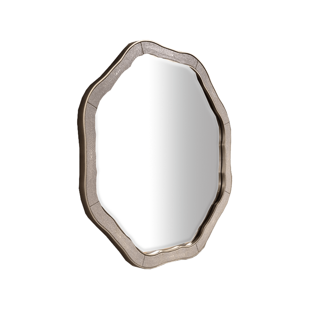 Defined by bold geometry, this Octagon Mirror features rich leather cladding and elegant brass trims, bringing warmth, texture, and understated luxury to contemporary interiors.